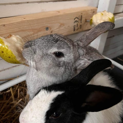 Byggd i gediget trä och klädd med grå konst matta , perfekt för kaniner att springa upp och ner på med stegpinnar åt båda hållen