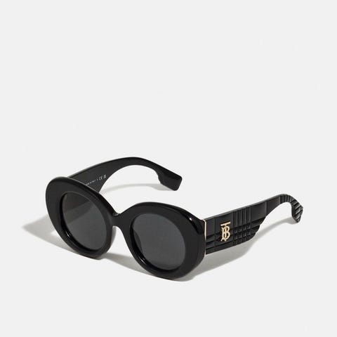 Burberry solglasögon för kvinna med svart båge. Inkluderar hårt fodral med rutmönster och mjuk påse med Burberry-logotyp.