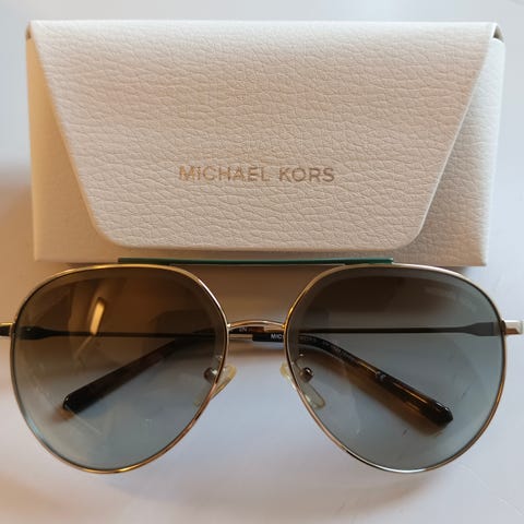 Michael Kors MK 1029 solglasögon för kvinnor. Glasögonen har en brun tonad lins och en ram i rose'guldfärgdad metall och plast. Modellen är anpassad för kvinnligt bruk.