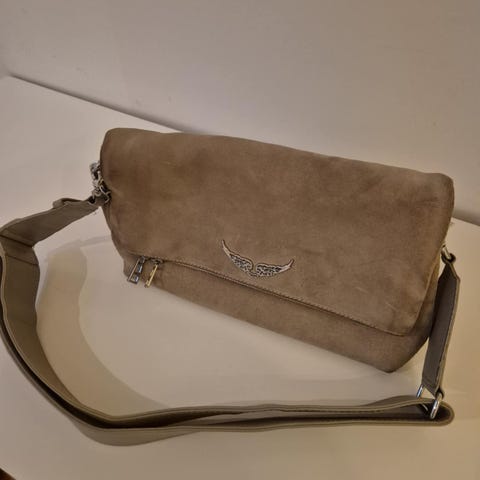 Snygg svart axelväska från Zadig & Voltaire i äkta skinn med silverfärgad dragkedja och ikonisk vingdetalj framtill. Väskan har en rundad form och bred, justerbar axelrem med logotyp. Perfekt storlek för en snygg och stilren look🌟Skriv för fler bilder/frågor!!🩷