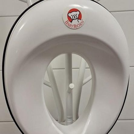 BabyBjörn Toalettstolsinsats i vit färg. Utformad för att underlätta för barn vid toalettbesök.