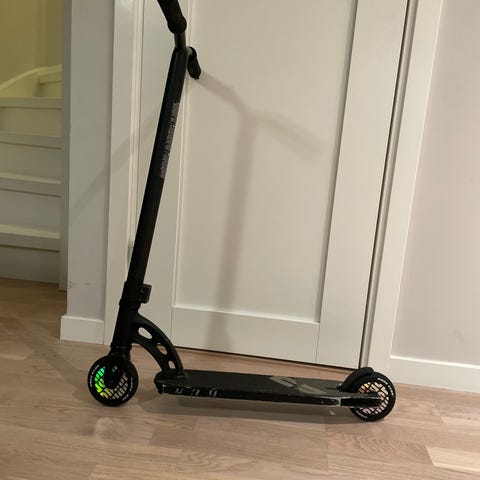 District S-Series stuntkickboard i svart färg. Kickboarden är designad för trick och stuntåkning med robust konstruktion och slitstarka hjul.