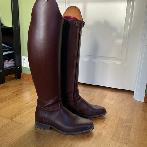 Färg: Mörkbrunt läder med mässingspännen