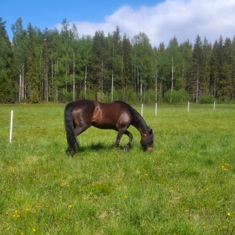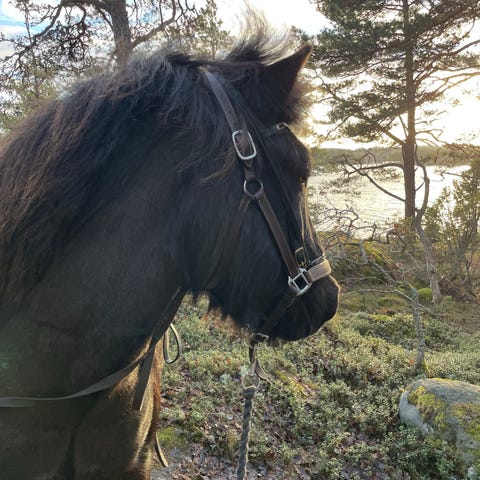 Hon har ett överben på insidan av frambenet och harhas, men är i övrigt frisk och fullt ridbar. En speciell häst med mycket personlighet och charm för rätt person.