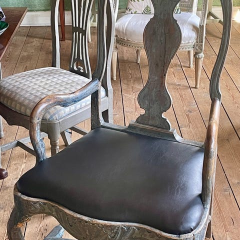 Stol från 1900 talet där tyget är lite slitet och behöver bytas.