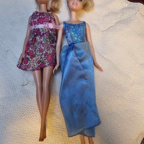Ett fint set med fyra dockor: en Barbiedocka i klänning, en Ken-docka med skjorta och shorts, samt två mindre syskondockor. Alla är hela och fungerar bra för lek. Perfekt som paket för den som vill bygga ut sin Barbievärld.