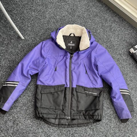 Cross Sportswear jacka för barn i storlek 146-152. Jackan är blå med mönster och har en huva. Den är avsedd för flickor. I mycket bra skick