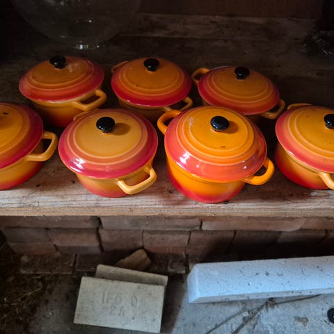 Le Creuset gjutjärn- och stengodsporslin i färgen Rosemary.