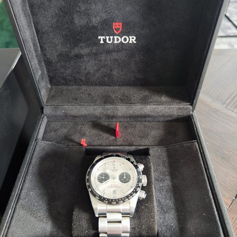 Tudor automat kronograf med datum o förstoringslins (daytona). Original, inkl läderband m Tudor lås. Extra gummiband svart med rolexlås. 40 tim gångreserv. Från 2000, se historikbild. Kaliber ETA 7750-1. 25 stenar. Safirglas. I stål. 100m. Refnr 79280. Utan original box o papper. Enjoy.....
