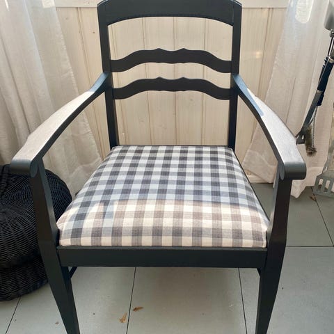 Äldre karmstol, ny bytt sittdyna, skick (se bilder för egen bedömning)