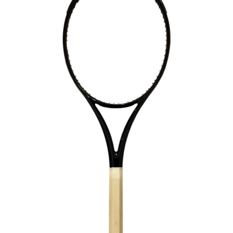 Detta är ett Novak Djokovic-signerat rack, stilrent monterat i en specialdesignad displayram med graverad platta “Wimbledon Champion 2019”.