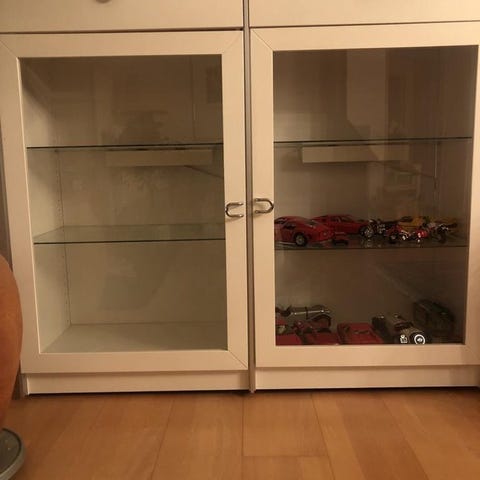 Hemnes vitrinskåp från Ikea i laserat rostrött säljes pga flytt. Kan hämtas i centrala Malmö mellan 23 och 29 december.