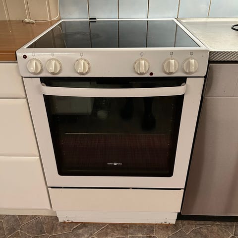 Är nästan helt oanvänd spis. Använde bara ett par gånger. Behöver komma och hämta spisen själv. Bred är 69.7 cm. Höjden går att justeras.