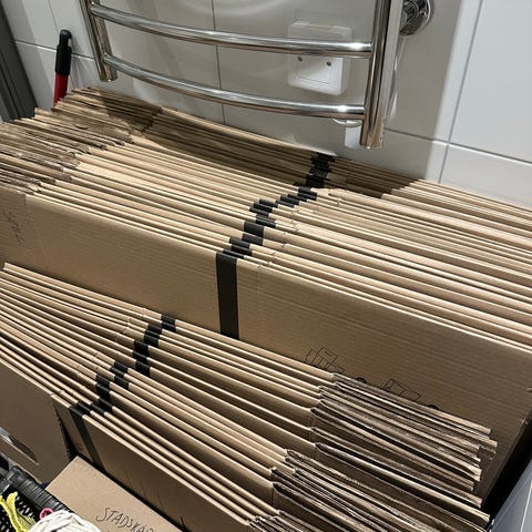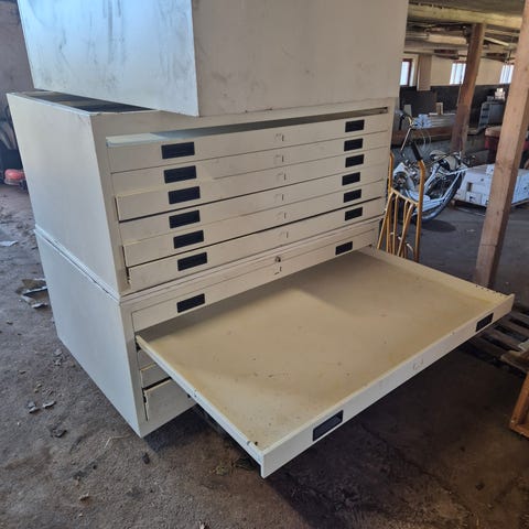 Cirka 80 stycken plåtlådor 35X53X30 cm (BxLxH). 40:- styck eller 2500:- för 80.