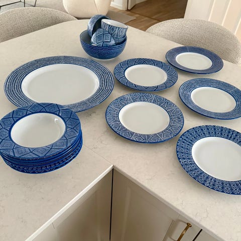 Storrensning här. Bra skick på allt. Många märkestallrikar Ernst, Villeroy & Boch, Gustavsberg och Newport. Två nästan nya pajformar diam 26 cm, den ena troligtvis aldrig använd och den andra nog bara använd några gånger. 8 fyrkantiga mattallrikar och 8 fyrkantiga assietter från IKEA mm mm.