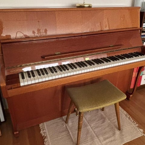 Säljer detta vackra piano då det inte används längre av oss i familjen. Pianot är stämt och spelbart, fullstort med 88 tangenter och är lite nött på vissa ställen. Är man intresserad av att ge detta piano lite extra kärlek på utsidan är det perfekt för den händige.