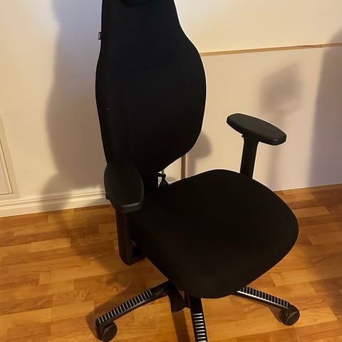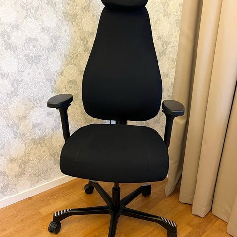 Kenson Anna kontorsstol. Stolen har justerbara armstöd och hjul för enkel förflyttning. Passar för kontorsbruk och erbjuder stöd för rygg och sittdyna i ett ergonomiskt utförande.