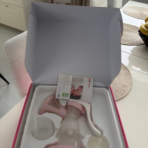 Neno Due elektrisk bröstpump med tillbehör för amning. Produkten är avsedd för att underlätta mjölkuttömning och inkluderas med olika delar för användning och rengöring.