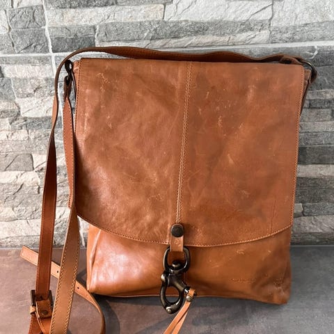 Elegant brun väska för vardaglig bruk gjort av konstläder. Märke: Ulrika. Ca 40 cm på brädden. Rymlig, praktisk och lätt att bära. Avtagbar handtag. Flera innerfickor. En innerficka med dragkedja. Extra ficka med dragkedja på baksidan. Liten, obetydlig slitage vid handtaget, se bild.
