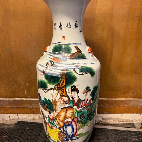 Säljer en snygg och rustik golvvas med dekorativa torkade kvistar/grenar. Perfekt som stämningshöjare i hallen, vardagsrummet eller kontoret. Vasen står i en charmig trälåda i vintagestil som ger en varm och naturlig känsla till rummet.