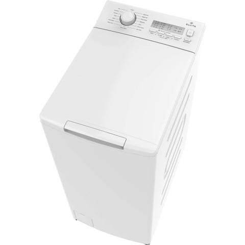 Electrolux toppmatad tvättmaskin med vit färg. Maskinen har en kompakt design och är avsedd för tvättning med öppning upptill.