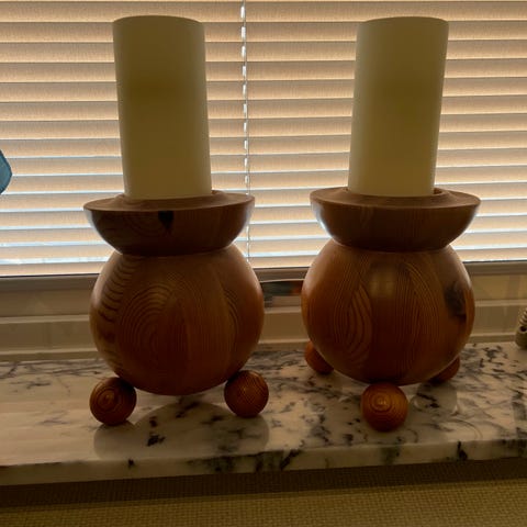 Träfigurer i par. Handgjorda och unika med fina detaljer.