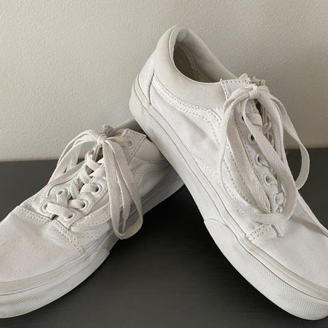 Säljer ett par coola Vans Old Skool med en unik, silvrig och holografisk yta. Perfekta som festival-skor, ett kreativt projekt eller för den som vill ha ett par unika "beaters"!