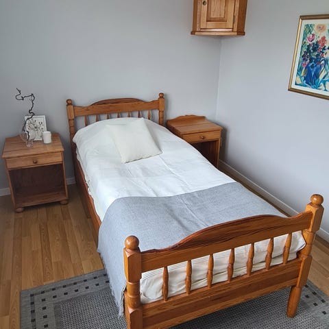 Sänggavlar från 50-talet till två 80 cm breda sängar. Hämtas. Fint skick men använda.