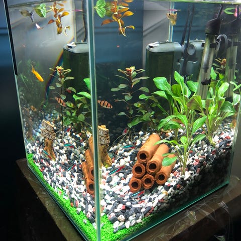 Akvarium med olika fiskar och dekorationer inklusive konstgjorda växter och en modell av ett skeppsvrak. Akvariet är utrustat för att skapa en dekorativ miljö för fiskar. Volym (110.L ) med 11. st på olika sorter som 4. st silver hajar på 10- 12-15.cm - 2. st eldsäkert rött svart färg - 4.st malar 2.st gråa 1.st oranga och 1. st rött + 1.st vanliga kul fisk , helt LCD belysning - in byggt vatten pump - allt dekoration innehållen ingår i priset + en mindre transport akvarium och tillbehör och mad med följer , akvariumet ca nu 2. år gammal men väl sköts som nytt kvitto och original kartongen finns kvar med följer Sälje som en pakt pris till ( 3500:kr ) vid rimliga affär priset kan ändras lite , enligt på bilder finns i Västerås .