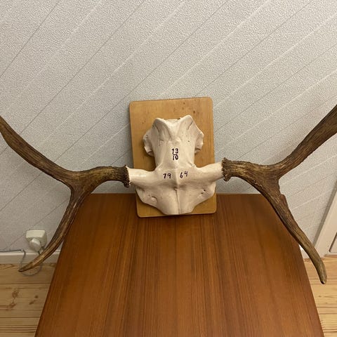 Älghorn, vitmålat. Fin inredningsdetalj. Finns i östra Västerås