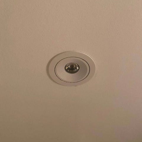 Taklampa med led, monterad i taket. Lämplig för allmänbelysning i rum med standard takhöjd. Kopplas enkelt med vanlig stickkontakt. Finns ca 10 st.
