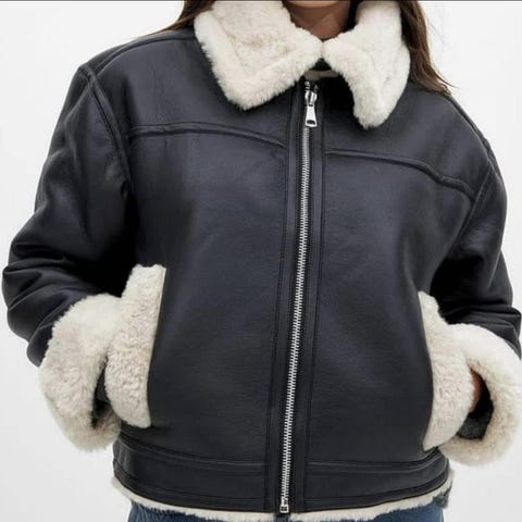 Snygg grön skinnjacka i mocka från SH Collection. Jackan har croppad passform, coola dragkedjor framtill och på fickorna samt stora slag med tryckknappar.