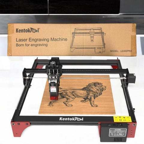 Maskinen har en robust aluminiumram och ett justerbart laserhuvud som ger fina och detaljerade gravyrer. Passar utmärkt för arbete i material som trä, akryl, läder, plast och kartong.