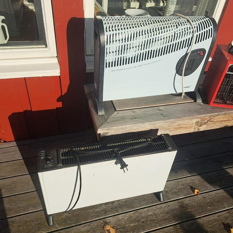 Anslut elektrisk värmeelement i silver med skyddande galler. Utrustad med vred för inställning av effektlägen. Bärhandtag för enkel förflyttning. Passar för uppvärmning av mindre utrymmen.värmaren är ( 450/900W 55X q26.cm ) lett använd och lett att flyta var man vill i hemmat , vikt ca > ( 2/1. kg ) finns i Västerås .