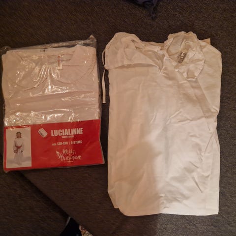 Lucialinne storlek 134/140 och luciakrona (utan ljus och batterier). Allt i mycket bra skick.