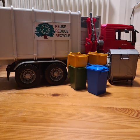 Stor sopbil från Dickie ToysBruder med tippfunktion och sopcontainer.