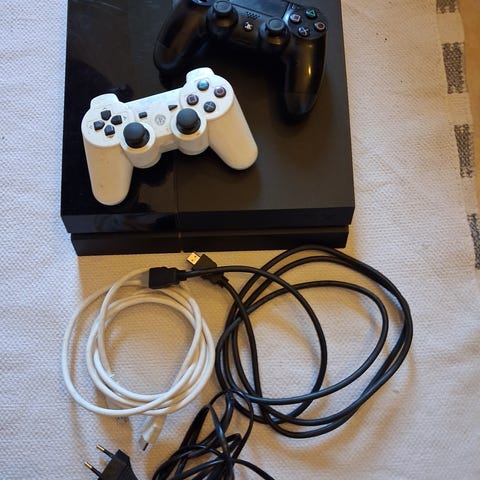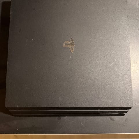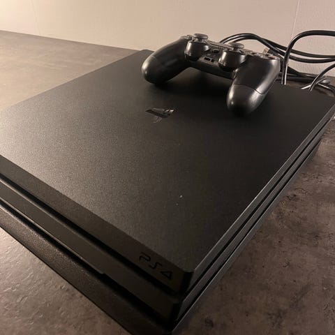Svart spelkonsol Sony PlayStation 4 Pro ingår med en ps-kontroll två spel som är gta5 och the lust of us och kabel