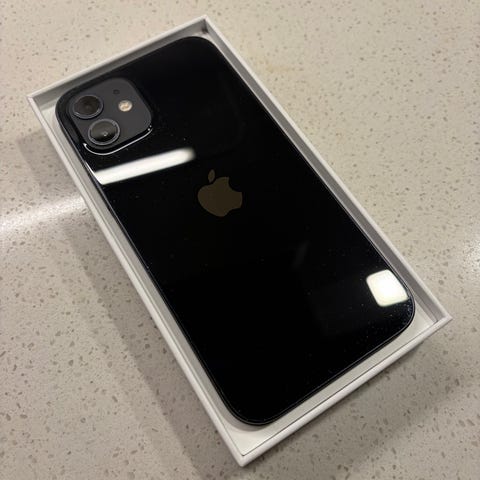 iPhone 12 med 64 GB lagringskapacitet i svart färg.