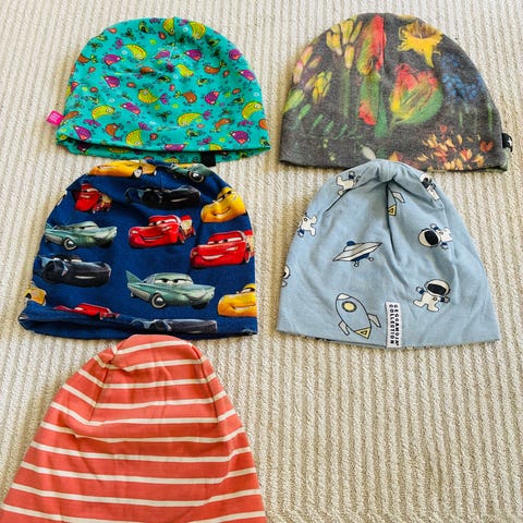 Barnmössor i olika färger o storlekar, höst o vinter, 12 stycken. Passar 3-7 år .