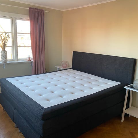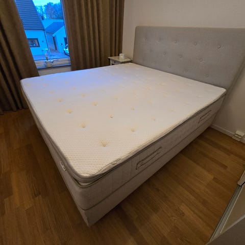 Säng från Kungsängen, modellen Annelund. Extra bred då den är 210cm bred. 200cm lång. Ena sidan är fast och andra medium. Sängen är i väldigt bra skick, inköpt för 4 år sedan. Sängramen ingår också. Säljes på grund av flytt.