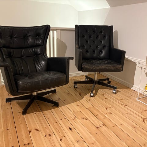 Fåtöljerna är använda men i gott skick. Stilren design, sköna linjer och hög sittkomfort – passar både i hemmet, loungen eller kontorsmiljö.