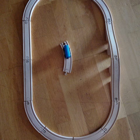 Träjärnväg träleksak med flera spår och tillbehör. Setet är tillverkat i trä och innehåller olika figurer och byggnader för att skapa en tågbana. Passar barn för lek och utveckling av motorik och fantasi.