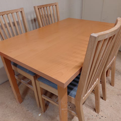 Ett Matbord i nyskick samt stolar som matchar, Allt detta ska bort. (matbordet går att förlänga och har en extrabräda som medföljer).