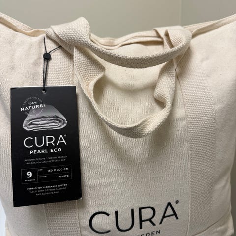 Nytt tyngdtäcke 9 kg. Single 150 x 200 cm. Cura of Sweden. Pearl. Light grey.