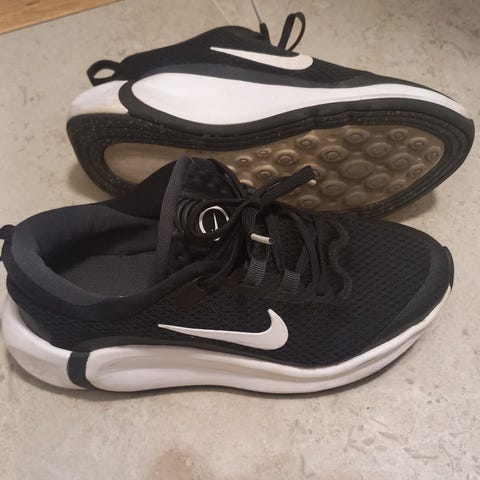Nike sneakers i storlek 47,5. Skorna är i vitt och grönt med skinnmaterial. Modellen är avsedd för allmänt bruk.