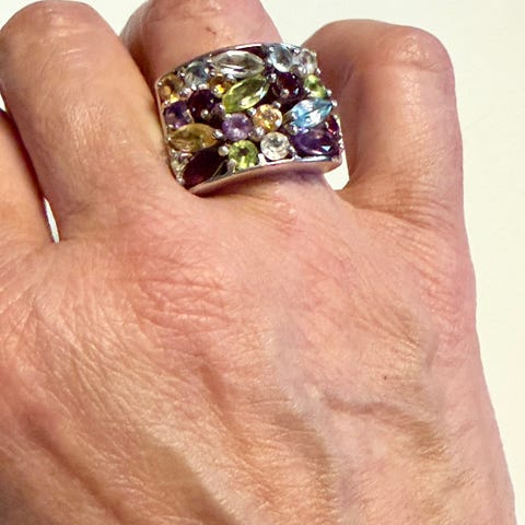 En ring som inspirerats av morgondagg, med små droppar längs med ringens framsida. Kontrasten mellan den matta ytan och de högpolerade dropparna, skapar ett vackert gnistrande skimmer.
