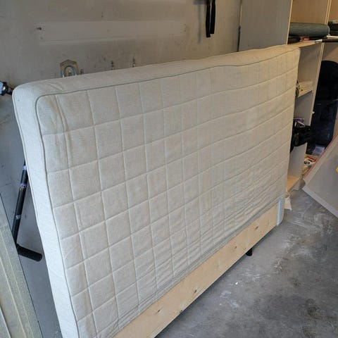 Sänggavel från IKEA. 120cm i grått tyg.