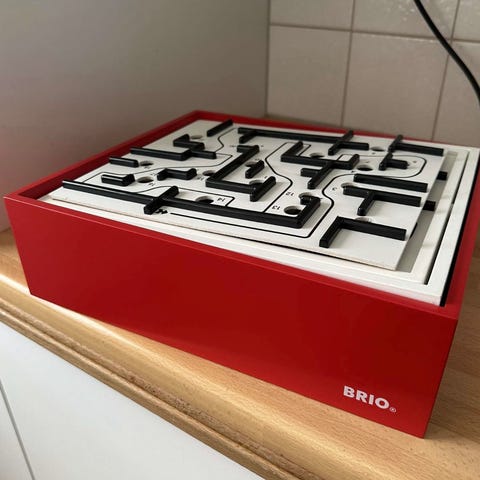 Labyrintspel tillverkat i trä med flera banor och kulor. Spelet är utformat för att träna finmotorik och problemlösning genom att navigera kulorna genom labyrinten utan att de faller ner i hålen. Finns i Näsbypark.