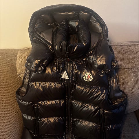 Moncler Longue Saison väst i färgen grön, storlek S för herr. Västen är tillverkad av polyamid och är avsedd för utomhusbruk som ett lättare mellanlager eller ytterplagg under svala förhållanden.
