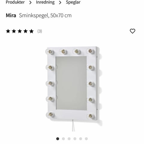 Mio sminkspegel med integrerade lampor runt ramen för belysning. Spegeln är rektangulär och har en vit ram. Designad för att underlätta sminkning och personlig vård. Mått 50x70. Mycket bra skick!